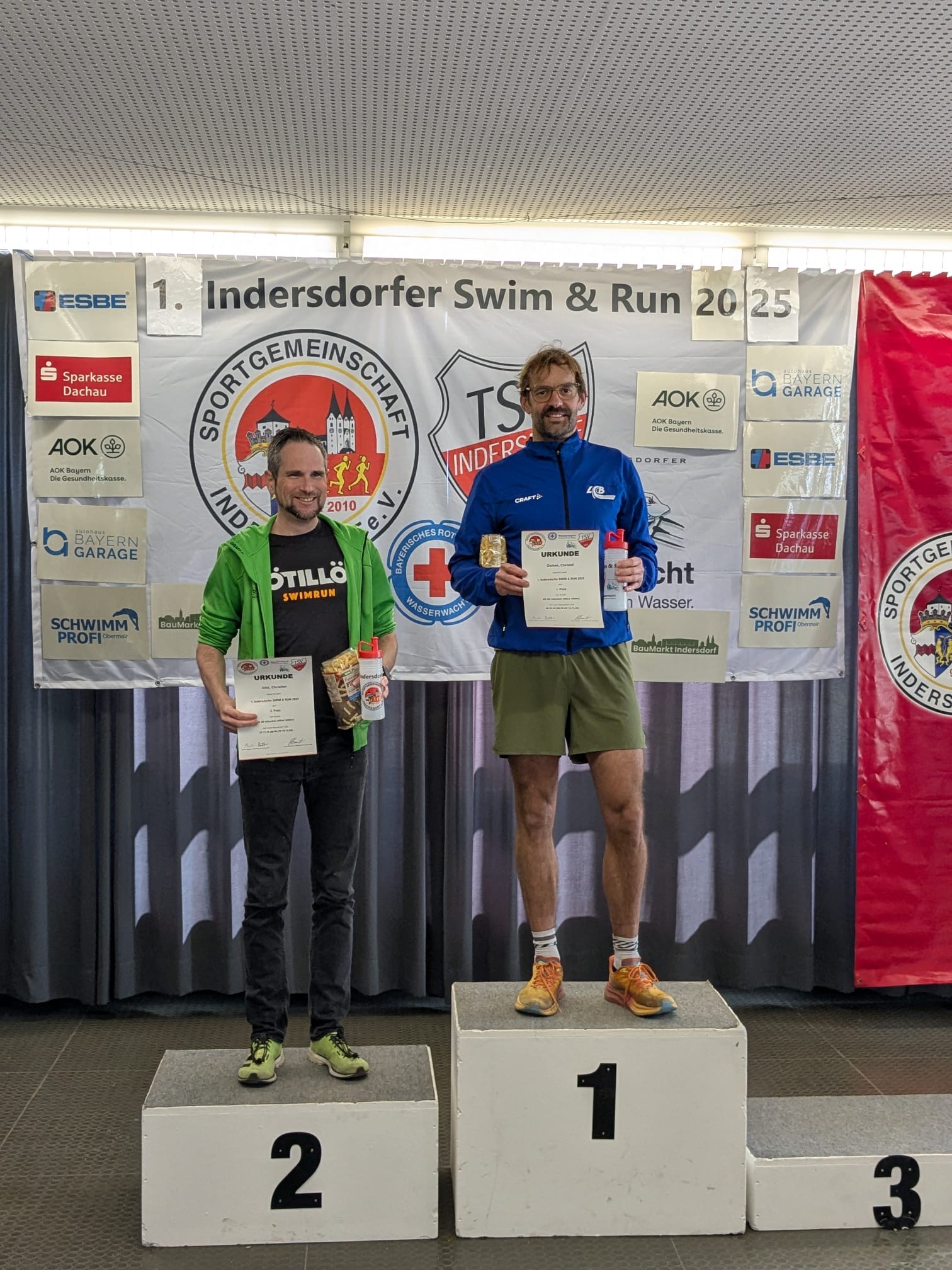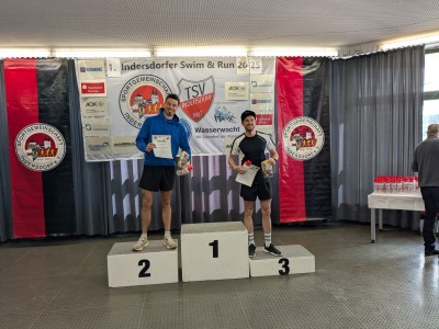 Am vergangenen Wochenende starteten 2 LCBler zusammen mit 100 Mitstreitern beim 1. Indersdorfer Swim and Run. Zuerst haben Leo und Christof die 400m im Schwimmbad bewältigt, bevor es bei schönstem Wetter auf die hügelige 4km-Laufstrecke ging. Sie kamen beim Laufen erst richtig in Fahrt und sprinteten vorbei an vielen Athleten und sicherten sich damit ausgezeichnete Plätze auf dem Treppchen! Leo belegte Platz 3 gesamt und Christof den 1. Platz in seiner AK. Herzlichen Glückwunsch!