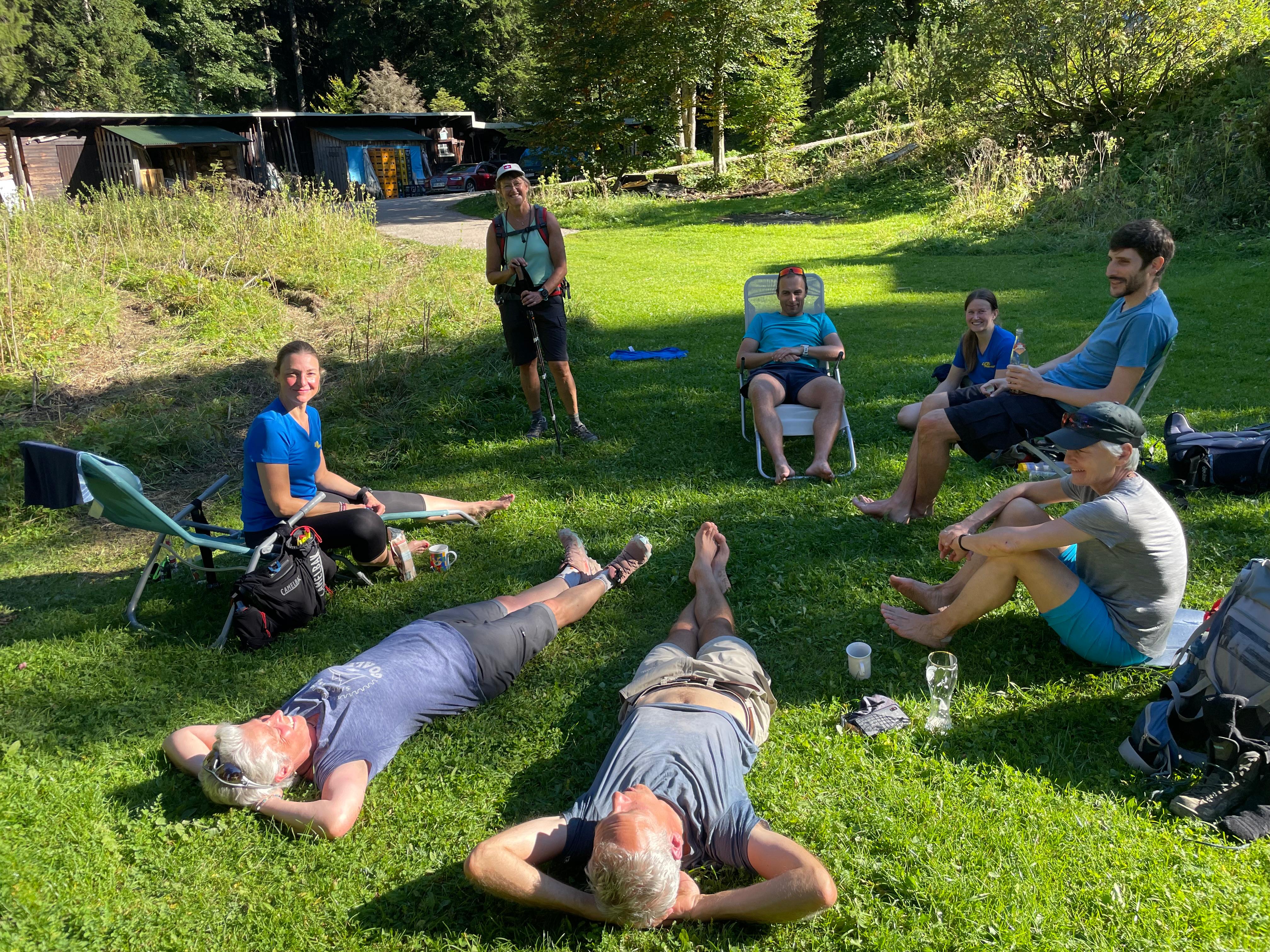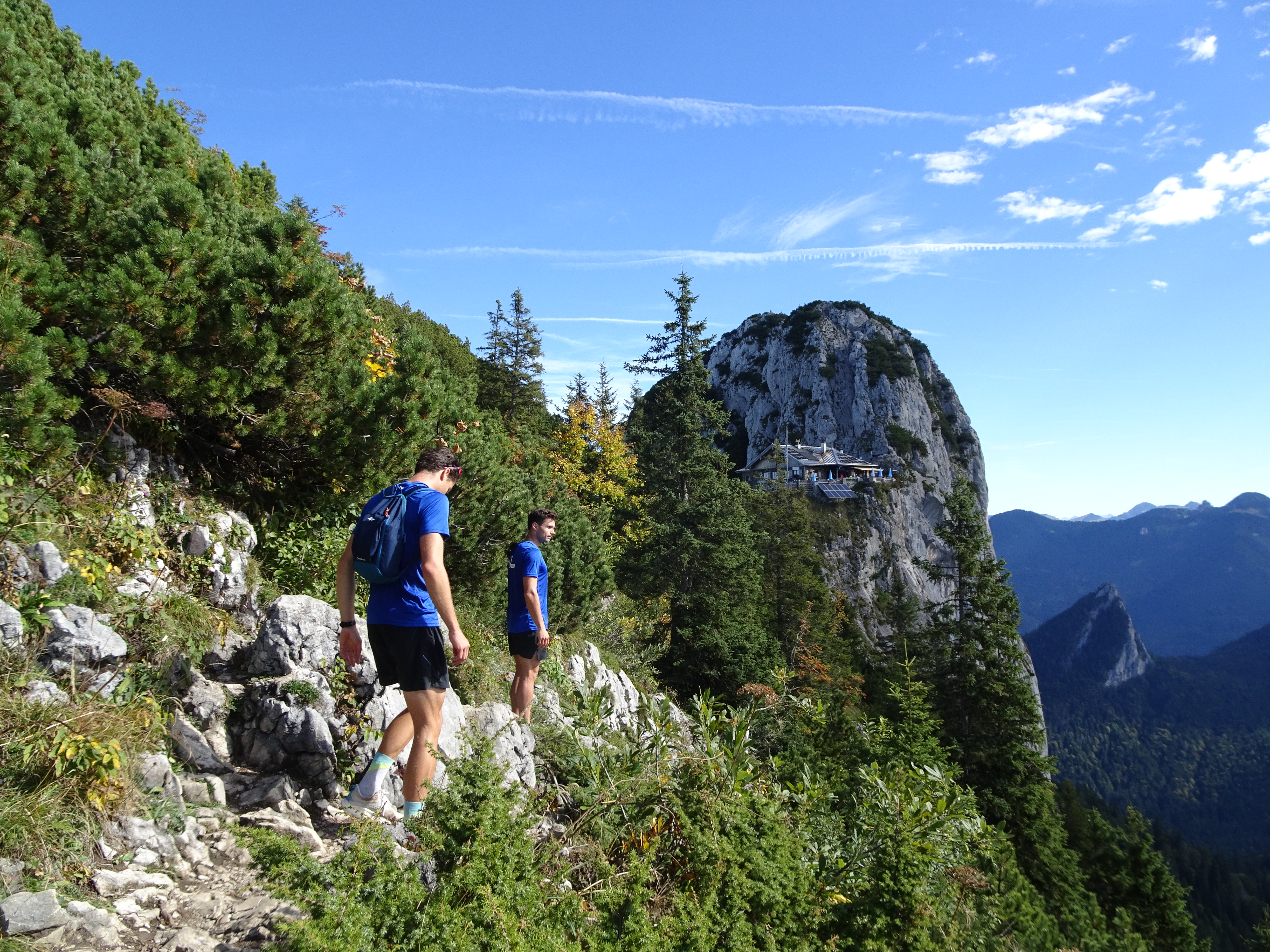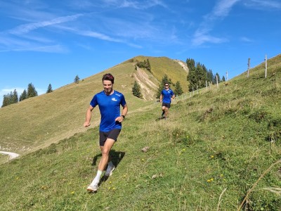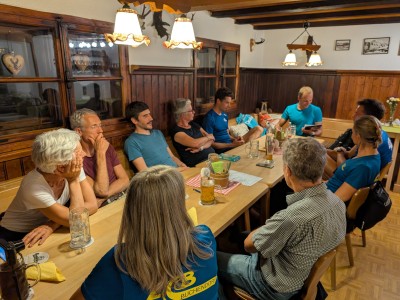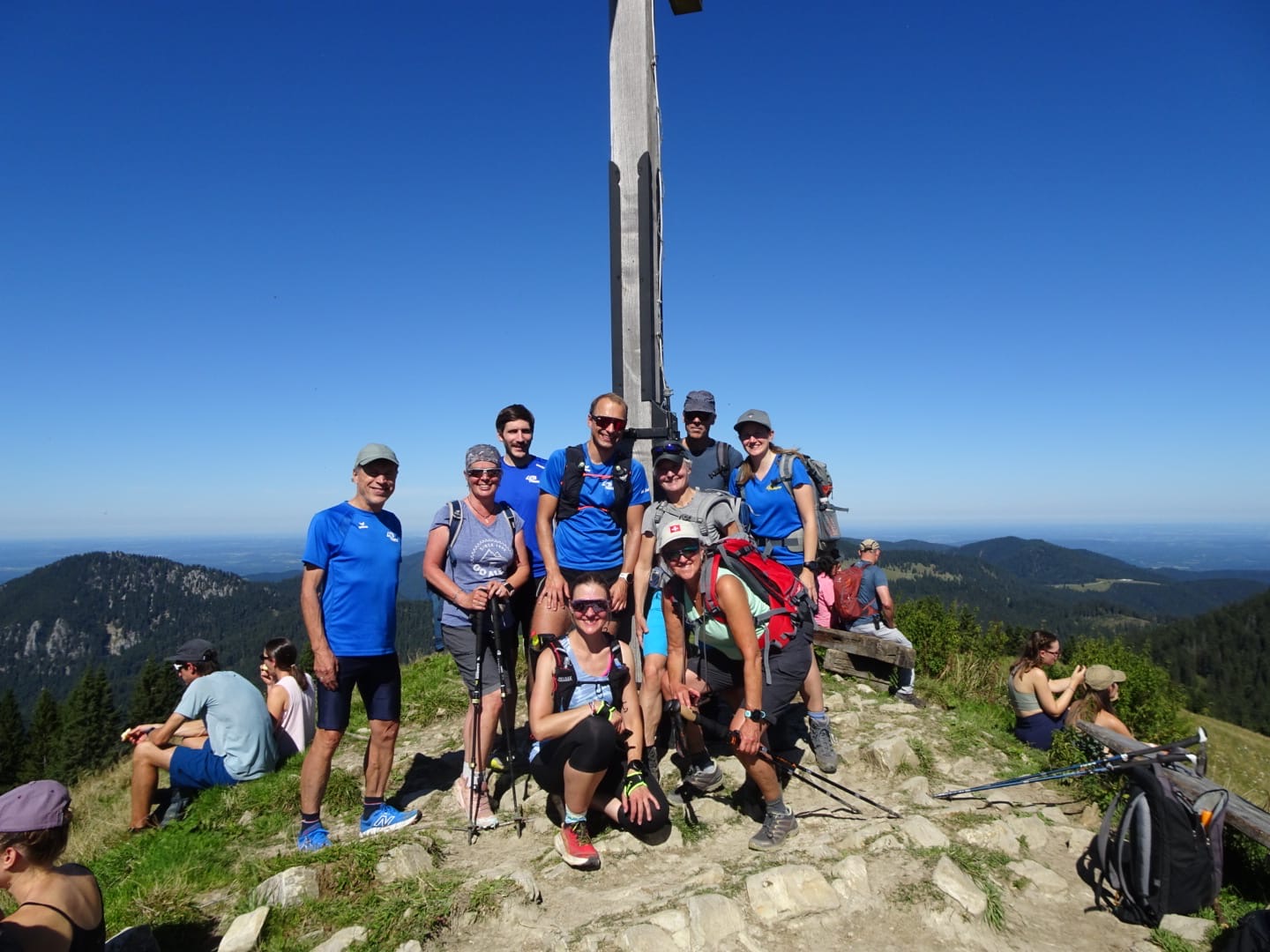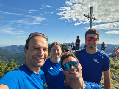 Weiter ging’s am Samstagvormittag: Die einen wanderten mit Bergschuhen über den Klettersteig auf das Seekarkreuz, die anderen schnürten die Laufschuhe und rannten auf schmalen Pfaden dem selben Gipfel entgegen. Ob gehend oder laufend – schließlich trafen wir uns oben, genossen eine zünftige Brotzeit und den gemeinsamen fantastischen Ausblick über die Alpen.