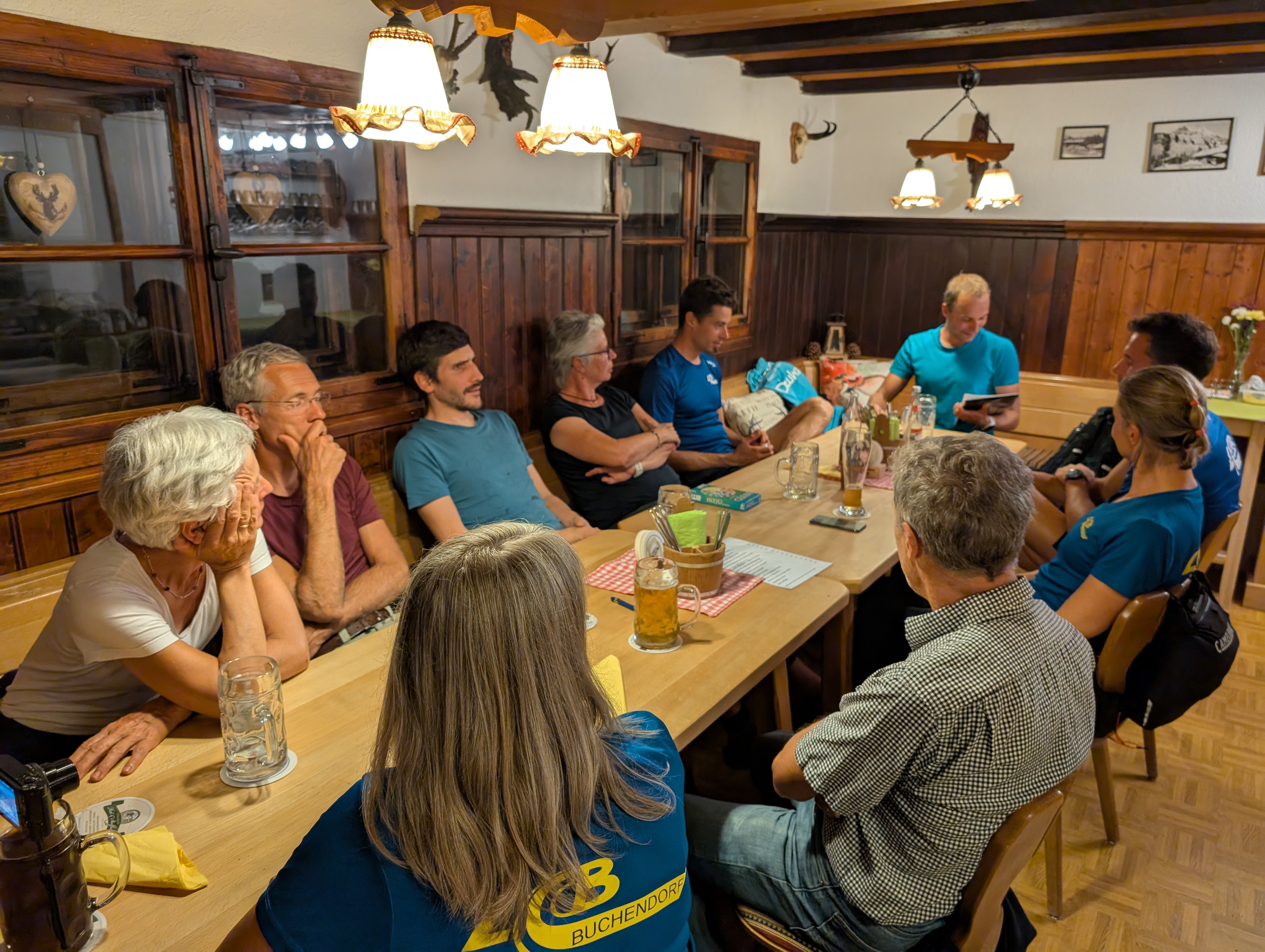 Am Abend is dann so richtig g’miatlich worn. Der Wirt servierte uns leckere Wildbratwürste und Kaspressknödel, dazu gab’s kühle Getränke und jede Menge gute Laune.