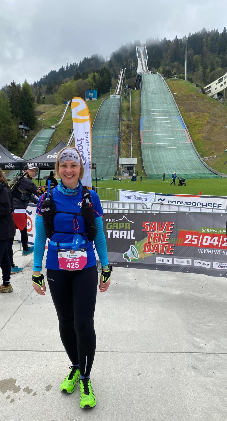 Am gleichen Vormittag startete Stephie in Garmisch auf der Langstrecke (ca. 27km) beim GaPa-Trail auf atemberaubenden, anspruchsvollen Trails und überwand die fast 1.200hm in 3:36 h.