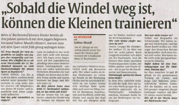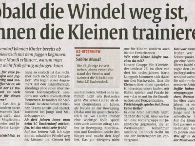Mit einem Schnuppertraining für Laufanfängerinnen am 27.7. und einem leichten Aerobic-Training am 30.7., sowie einem Lauf- und Konditionstraining für Mädchen ebenfalls am 30.7.2008 beteiligt sich der Läuferclub Buchendorf (LCB) an den Frauensportaktionswochen 2008. „Frauen tun dem Sport gut“ – so lautet das Motto der bundesweiten Aktinswochen vom 1. Juni bis zu den Sommerferien, an denen sich auch der LCB anschließt. Mit der Aktion rufen Bundesgesundheitsministerin Ulla Schmidt und DOSB-Vizepräsidentin Ilse Ridder-Melchers Sportvereine in ganz Deutschland auf, Mädchen und Frauen mit Schnupperangeboten für mehr Sport und einem gesunden Lebensstil zu begeistern.