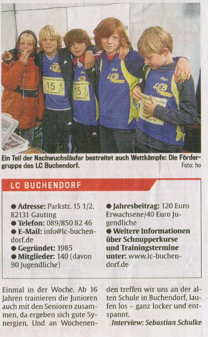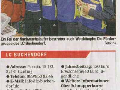 Wir laden alle Mädchen und Frauen herzlich ein, am Sonntag, 27.7.2008 um 8.00 zum Schnupperlauf, Treffpunkt alte Schule Buchendorf, sowie am Mittwoch, 30.07.2008 um 18.30h entweder zum Aerobic oder Lauf- und Konditionstraining, Treffpunkt Hauptschulsportanlage Gauting. Anschließend 3000-Schritte-Spaziergang im angrenzenden, schattigen Wald am Mittwoch, 30.07.2008 um 19h (s. auch www.lc-buchendorf.de). Das Programm richtet sich sowohl an Sportbegeisterte, als ganz besonders auch an Mädchen und Frauen, die bislang kaum oder nicht sportlich aktiv sind. Beim gemeinsamen 3000-Schritte-Spaziergang können alle mitmachen – unabhängig von Alter, Fitness oder Vorkenntnissen. Schon „jeden Tag 3000 Schritte extra“ – so lautet die Empfehlung der Kampagne „Bewegung und Gesundheit“ des Bundesgesundheitsministeriums fördern Gesundheit und Wohlbefinden.